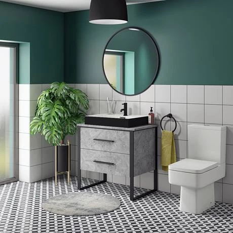 (1) Arezzo 800 Concrete-Effect Grey Matt Black Framed 2 Drawer Vanity Unit with Worktop