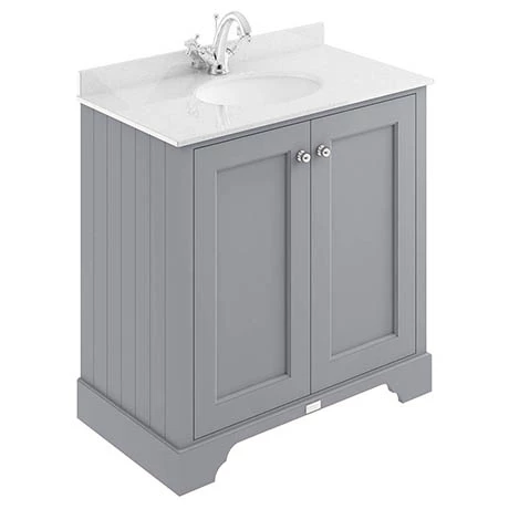 The Bayswater Plummett Grey 800mm 2 Door Vanity Unit and White Marble Basin Top will create a unique centre piece to any classic themed bathroom. It’s ample storage space provides plenty of room for bathroom essentials while the soft close doors limits the daily wear and tear and provides a quieter closing action. Made from high quality materials, it features side panelling for a classic look, elegant chrome knobs and a Bayswater logo plate that beautifully finishes the unit. The stunning white marble top basin co-ordinates beautifully with the classic white china basin.