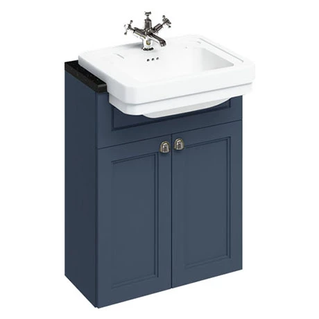 This beautifully designed 2-door vanity unit and semi-recessed basin is from Burlington’s fitted furniture range. Create a seamless look by combining base and wall units and stunning Minerva worktops to any configuration to give the illusion of space and maximise functionality in your bathroom.Â