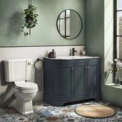 Period Bathroom Co. 920mm RH Offset Vanity Unit with White Marble Basin Top – Cobalt Blue