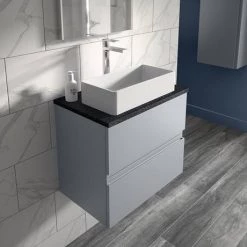 Hudson Reed Urban 600mm Satin Grey Vanity Unit – Wall Hung 2 Drawer Unit with Black Worktop