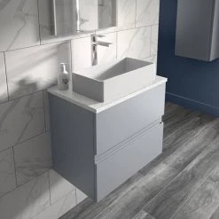 Hudson Reed Urban 600mm Satin Grey Vanity Unit – Wall Hung 2 Drawer Unit with White Worktop