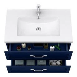 Period Bathroom Co. Wall Hung Vanity – Matt Blue – 800mm 2 Drawer with Chrome Handles
