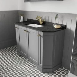 Old London Storm Grey Art Deco 1000mm Angled Cabinet with Black Marble Basin Top